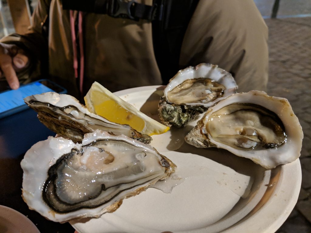 Noordzee – Mer du Nord, noordzeemerdunord.be, Rue Sainte-Catherine 45, $$-$$$ – Try their fresh oysters, when we visited the shop itself was closed but they had a stand in the nearby Christmas market.