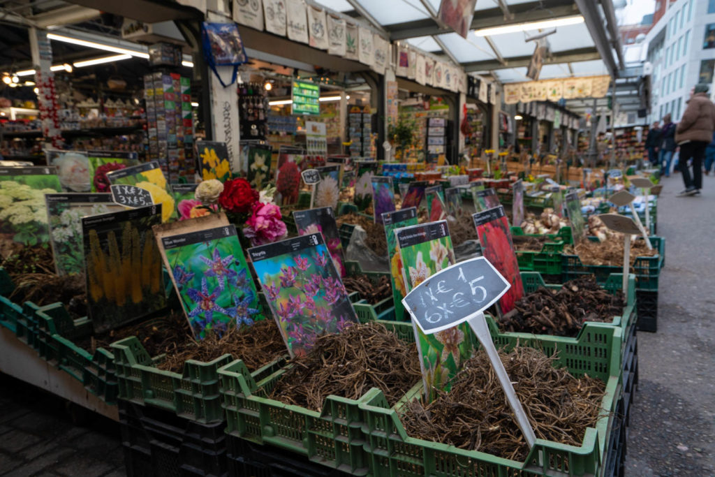 As a flora fanatic, Bloemenmarkt was at the top of my list, and even though it is wintertime, I was still severely disappointed at the lack of fresh flowers in the shops. The bright tulips sitting in the barrels were synthetic, and other than bulbs, seeds and souvenir trinkets, there wasn’t much to look at. Only the final shop on the corner closest to McDonalds seemed to be an actual flower shop. The sudden smell of real flowers eased my disappointment and the dried flowers carpeting the ceiling stole my heart. I snapped photos dreamily until I got inside and belatedly saw a sign that said no photos, oops!