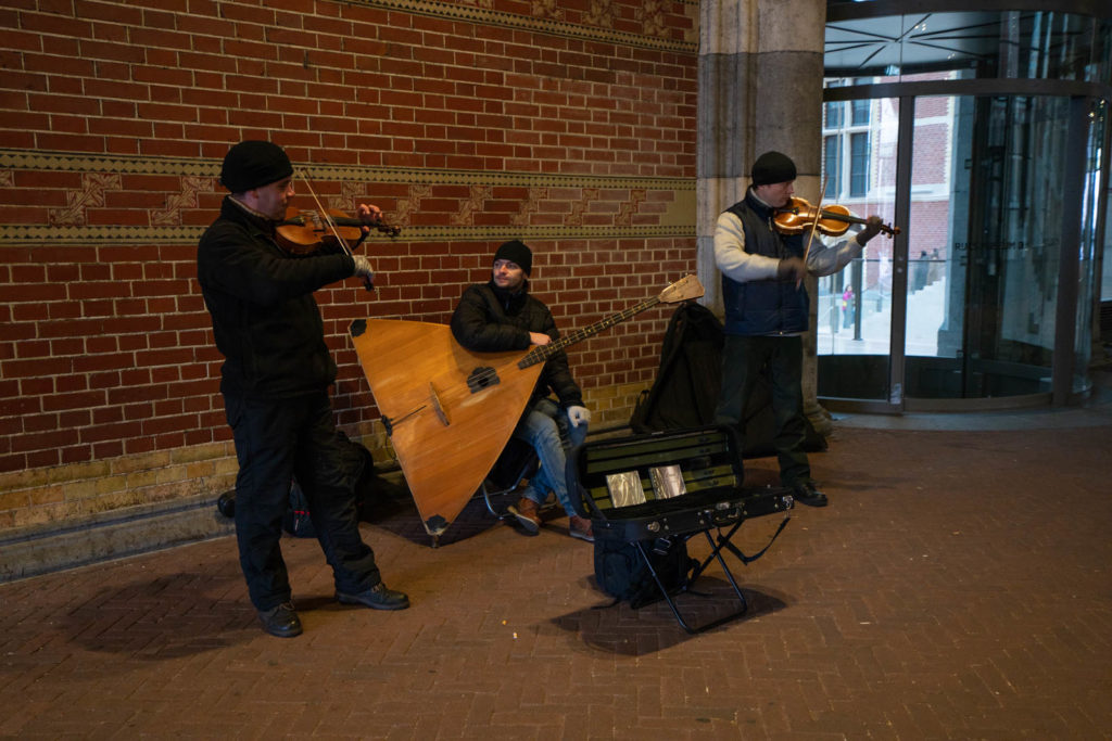 We skedaddled on over towards the Rijksmuseum, where the lithe voices of violins beckoned from the tunnel. As we entered into its darkness, we could finally make out the two violinists and a bassist playing a giant triangular looking guitar, which Google tells me is a contrabass balalaika. They were incredible musicians and somehow the tunnel seemed both ironic and ideal for their performance.