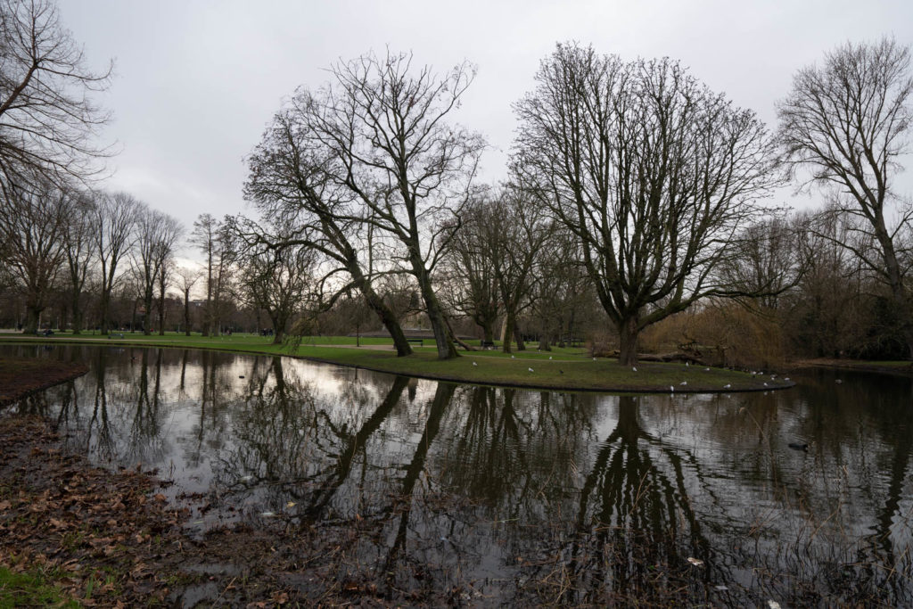Since the weather was still holding, we opted to skip the museum and visit Vondelpark first. Despite the chill and a light drizzle there were plenty of people out and about. We enjoyed some people watching among the bare trees; their fallen leaves trimmed the murky ponds. The green of the grass was brilliant amid all the rusty browns. An interesting fact: the park would be completely submerged in water if it wasn’t renovated every 30 years!