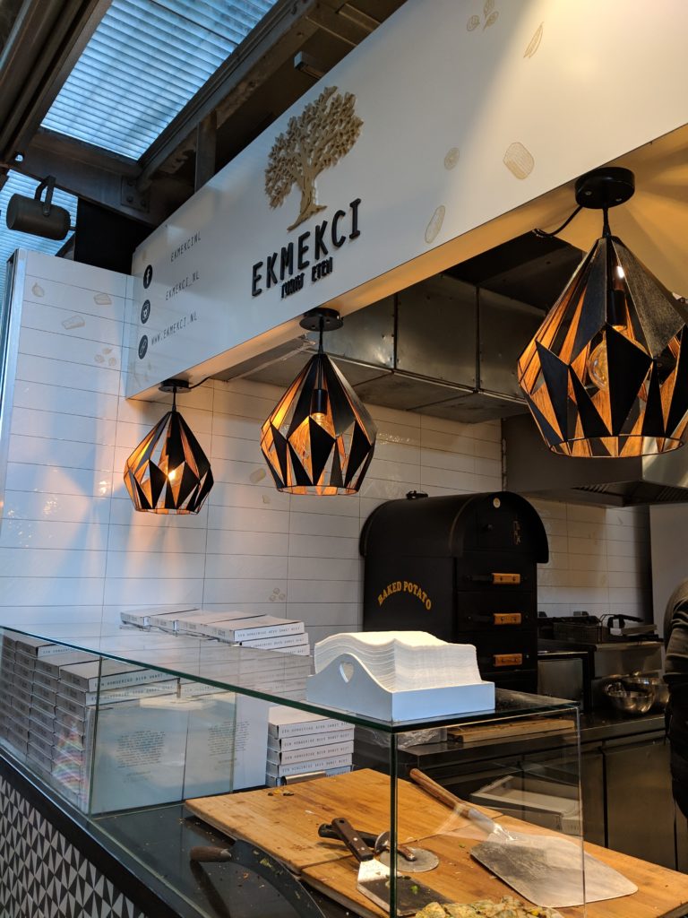 When it got too cold to sit still, we decided to warm up by trekking up to De Hallen Amsterdam, a converted industrial building that now serves as a shopping and creative space. We mainly came to check out the Maker Store, a boutique offering locally handmade goods and unique products. There was everything from clothes covered in hilarious illustrations and cans of fertilizer made from local manure, to wooden and leather products that you could customize with a burned design of your choice. There was also a neat looking denim store across the way, but we got sidetracked by the Foodhallen next door.