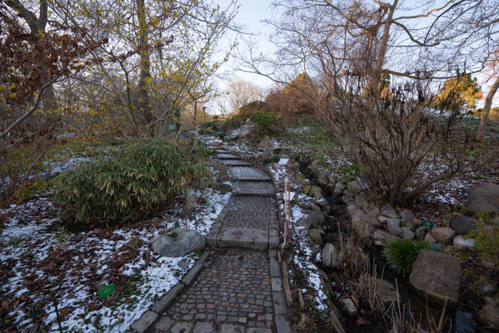 On our first clear and crisp day we strolled through the King’s Garden (Kongens Have) and the Botanical Garden (Botanisk Have). We started at the King’s Garden, also known as the Rosenborg Garden, an expansive park with various sculptures and a well-laid rose garden (though in winter you’ll have to imagine the roses). The 3 entrances and paths have remained the same though the original orchards and gardens have since been replaced and modernized. While winter saw less colors, the flat openness of the park lends itself to the season’s aesthetic: the thin blanket of snow made for some beautiful photos. In the summer the park is filled and often used for events, but we were happy to have the park mostly to ourselves during the brisk afternoon: we only ran into some gardeners and a handful of people here and there.