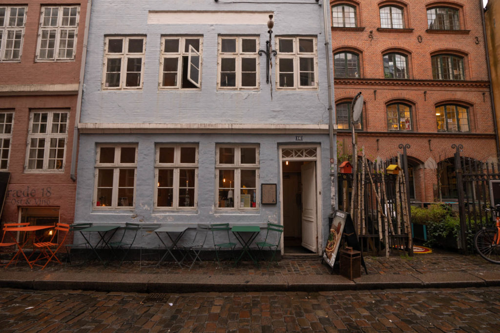 As it was yet still early (the museum doesn’t open until 11 am), we passed through Snaregard & Magstræde, two connected streets that were partly under construction but still held that historic grace and made for beautiful photos: delightful orange chairs contrasted the baby blue building and the tiger striping cobblestone shone from the earlier drizzle.