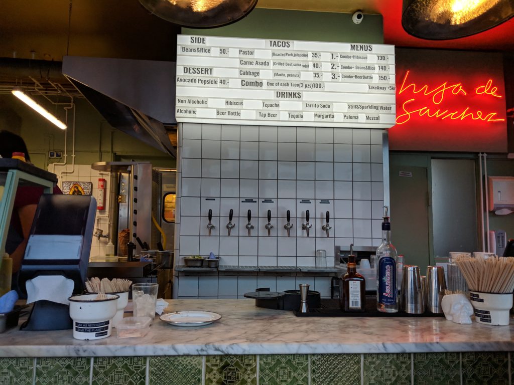 Hija de Sanchez, hijadesanchez.dk, Slagterboderne 8, $$, no cash, cards only – More hype than bite! Good quality tacos but fairly expensive for what they are. Get the combos to save a little and try their Hibiscus tea. Extremely limited seating inside.