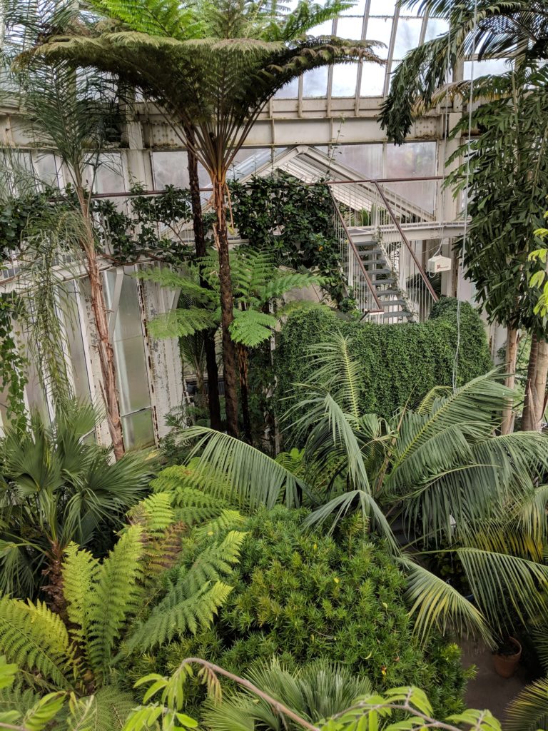 The animal park was modest with some deer and ducks, it was fairly inactive though some of the animals might have been taken in due to the cold. There was a lovely educational garden organized by plant type such as medicinal, aromatic or fibrous, but with the chill in the air we zoomed over to the botanical greenhouse, where we soaked in the warm humid air and pretended to be somewhere tropical instead. I fell in love with the main atrium of the greenhouse, which was quite tall and had a set of stairs laden with leaves that we took up to the upper rim where obtuse yellow lily-like flowers bloomed with red centers that looked almost like blood stains. Though slightly alarming, it just added to the strange magic of being able to look down upon the treetops.