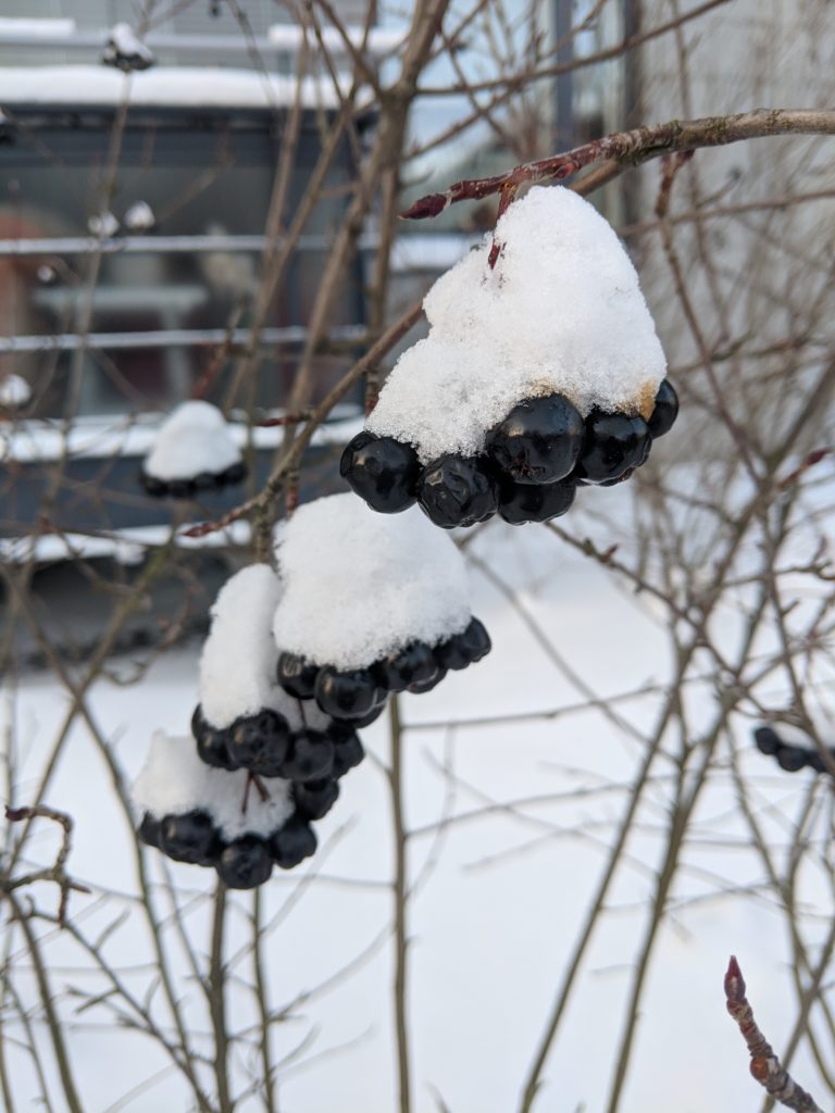 Walking through the streets with the snow piled up in corners. Snow on top of snow and you can’t be sure if it’s old snow or hard rock or something else entirely. That distinct squeaking crunch of fresh snow underfoot: the air compressing like a song. There is only inside and outside, reverting back to survival instincts of seeking shelter.