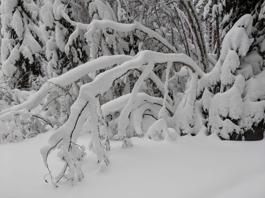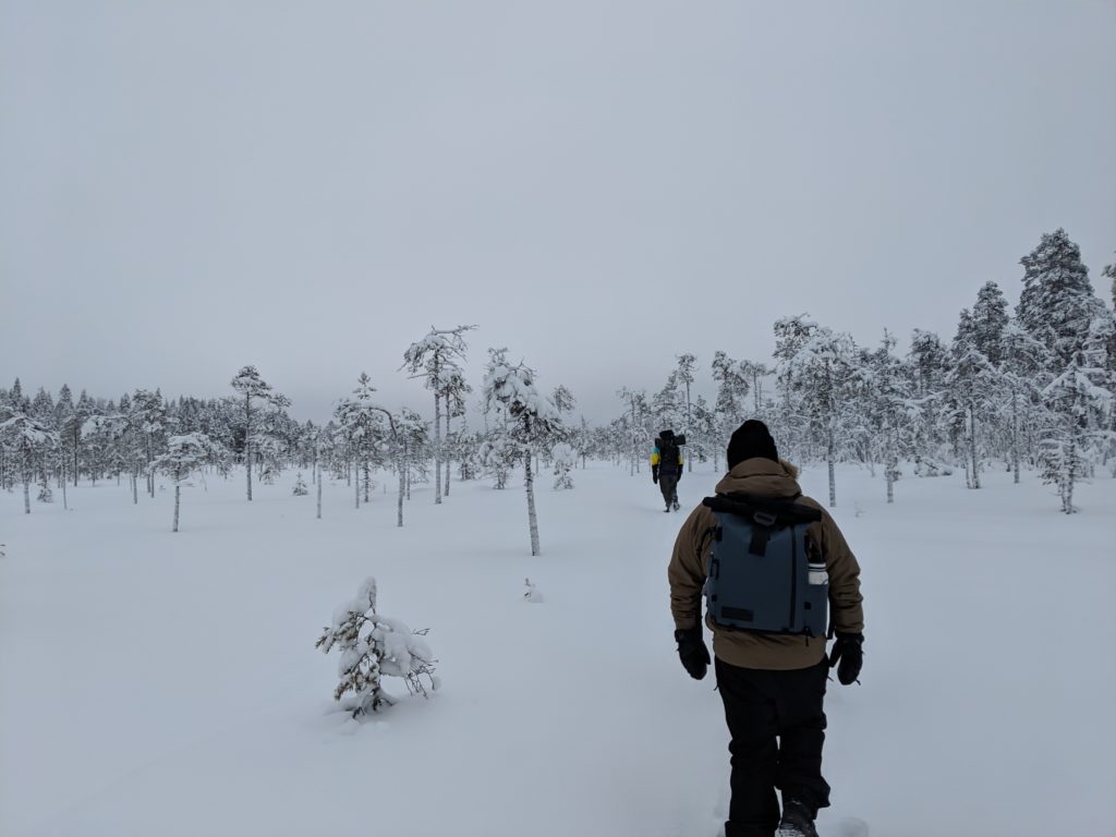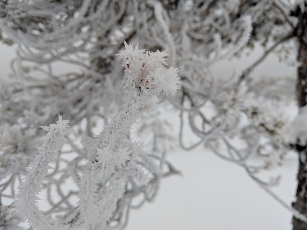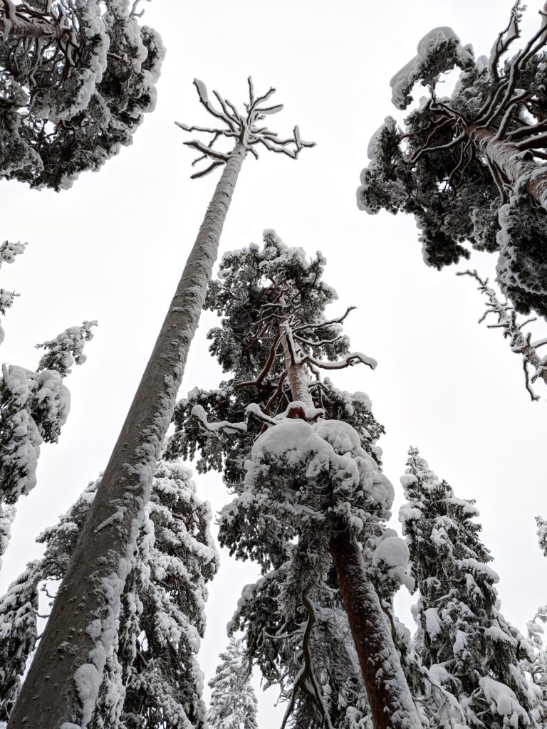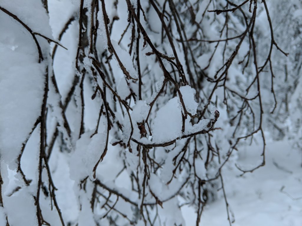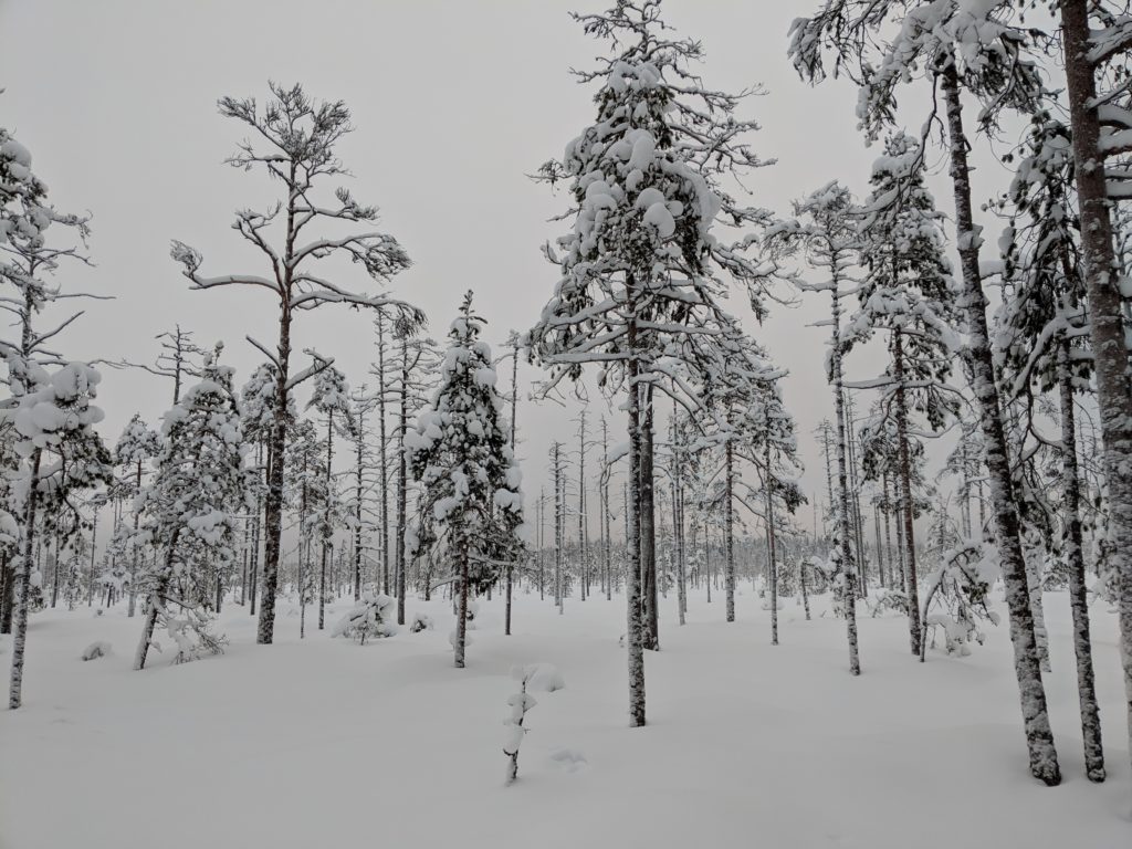 The Seitseminen National Park stretched like an endless untouched carpet of snow, trees lining the edges, melding into the gray dusky sky. The snow was so thick here, I finally understood the phrase “laden with snow” looking at all the bowed trees. We blindly followed Tomas and Lin, turning surprising curves along the unseen path; our crunching boots were the only signs of energy out in the quiet fields of white. Snow crystalized on the branches and yet those sprawling mounds of soft fresh snow, everything felt so pristine and delicate, so delicate that some impish part of me was tempted to plow through it all. Break the stillness, test the form! There was something so spectacular about being on in the wintry wilderness and experiencing this magical element of snow: natural, pure, harsh, cold, soft, round, sparkling, sharp, opaque, clear.