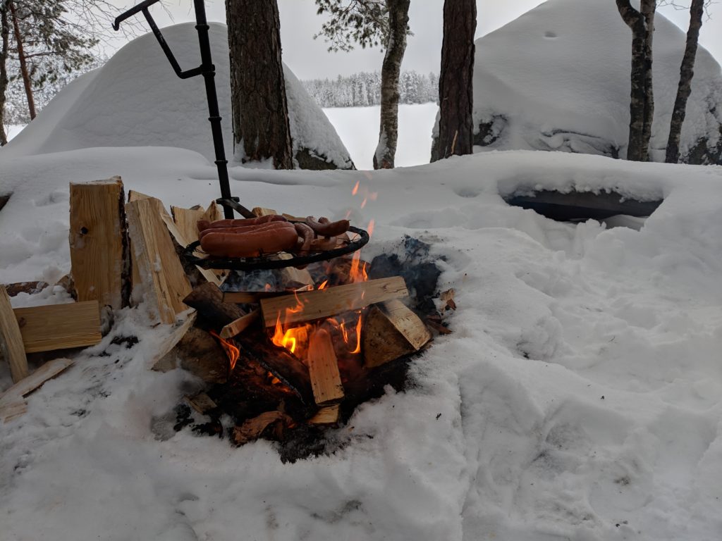 After a long day of winter hiking, sauna is the perfect way to recover. This time we were taken to a public sauna, Kaupinojan Sauna. We went a couple hours before closing and it was packed! We split up girls and guys and go through the locker rooms to change and rinse off. When we exit the locker rooms and reach the sauna “lobby” I’m greeted with the smell of sweat and bodies and heat. We grab some sitting boards and file into the sauna. Just as we reach the door I feel it. The heat smacks me in the face, I look into the dark room and there’s rows of seats like a little amphitheater; the higher up you sit the hotter it gets. I can barely stand sitting at the second level, the air is so hot I no longer smell anything and it feels like I’m breathing in fire, a complete opposite of being outside and feeling my nose hairs freeze. They’re constantly pouring water onto the rocks and the room floods with steam over and over again – I feel like a baby but I don’t last long.