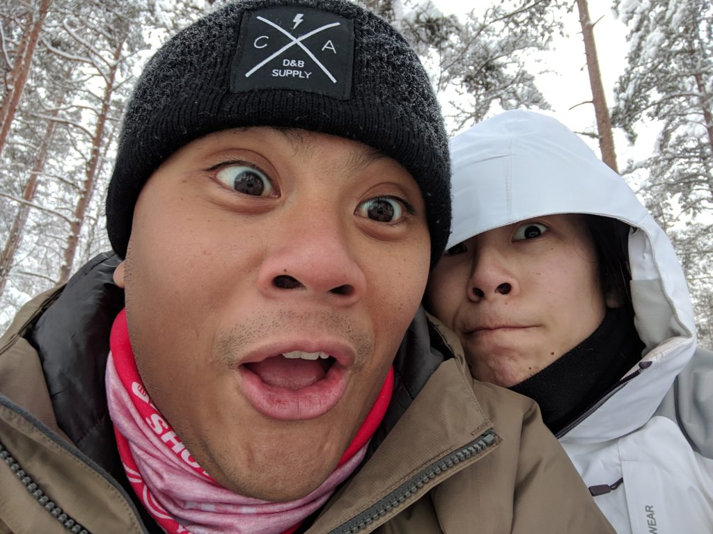 I found waiting between sauna and avanto more difficult as you’re more sensitive to the cold air when you step out. I am able to fully dunk my body though on the second try. Despite telling myself to stay calm, the cold was so engulfing I don’t remember breathing at all. It was a very different experience from snow rolling and I can’t say which was better or worse. By the time we left the sauna, the temperatures read 96-99 C, the water was 2.5 C, and the air outside was -6.8 C.