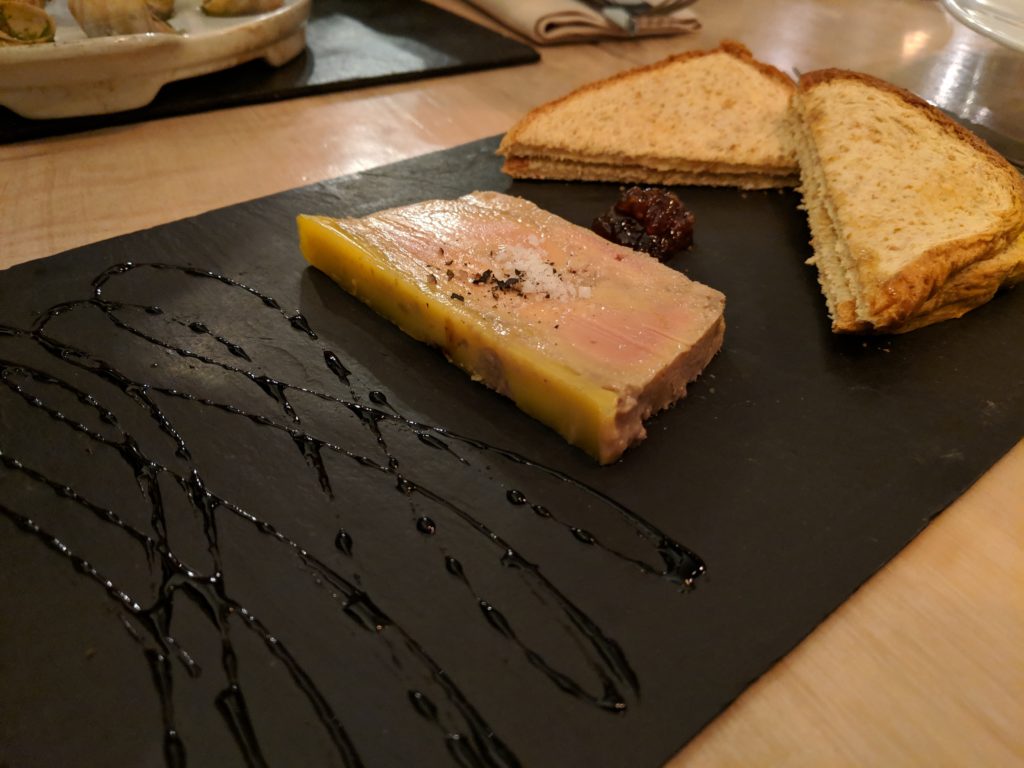 - Foie gras toasts briochés, a sweet and decadent slab of foie gras, so creamy