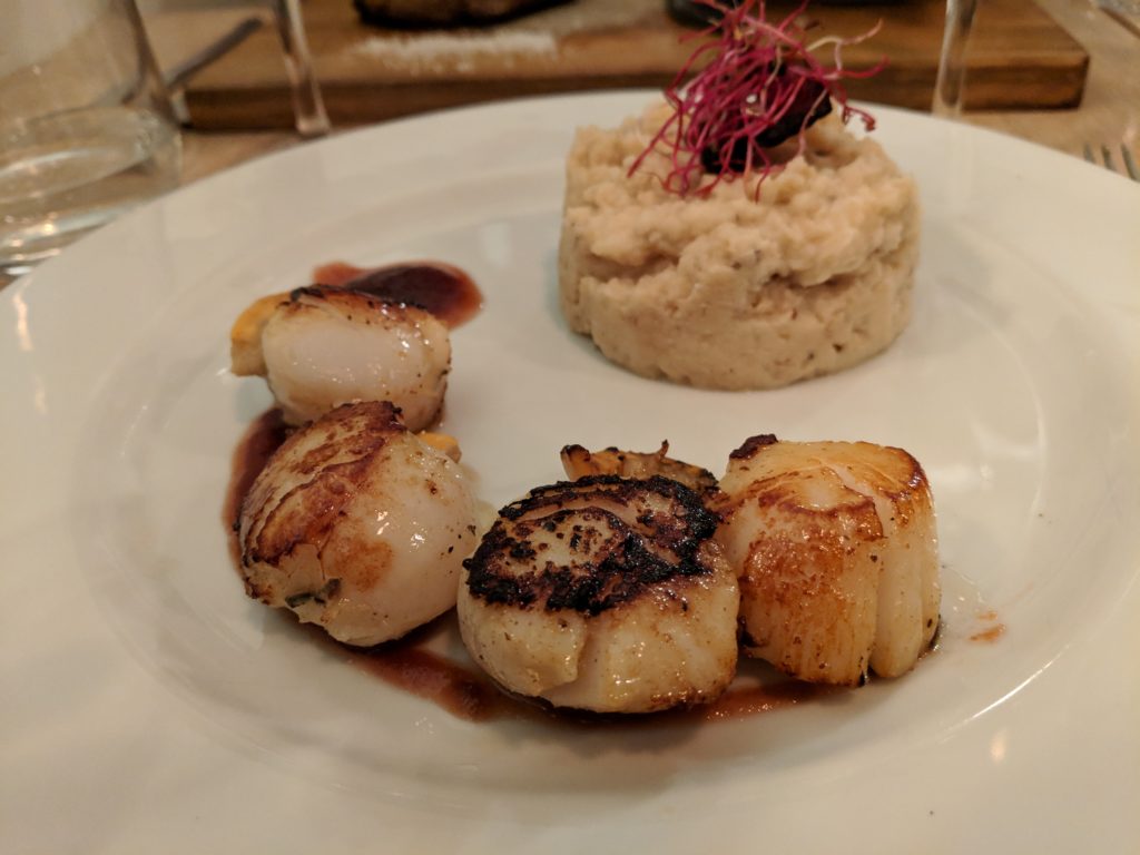 - St Jacques Poêlées au Caramel de Betterave, purée de Celéri-Rave aux noisettes, such sweet and delicate scallops