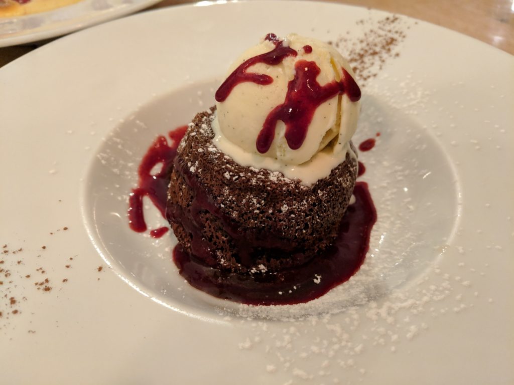 - Chocolate lava cake, an excellent though typical hot lava cake, not too sweet